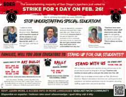 SDEA educators are standing up for Special Education students and for the rights in their current contract through their ULP strike. Separately, they are also still negotiating their next contract with the District. Learn more about what SDEA educators are fighting for in their next contract: